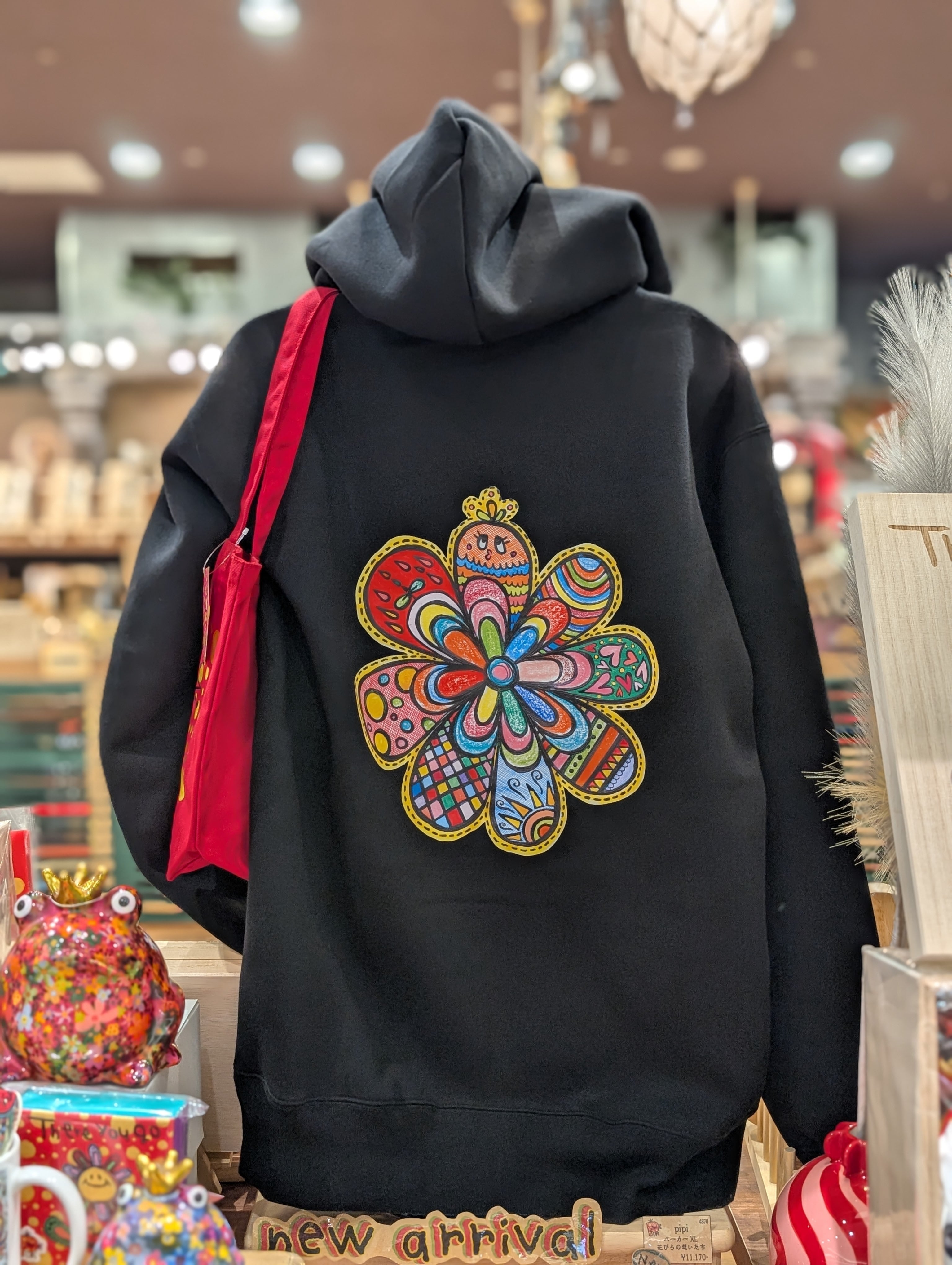 新商品🌸 着るだけで気分が上がる一枚 pipiの人気アート「花びらの想いたち」を背中いっぱいにプリント。 カラフルな手描きデザインが、毎日に元気とワクワクを届けてくれます。 ゆったり着られるXLサイズは、ワンピ風にも重ね着にも相性抜群。 裏起毛であたたかく、寒い季節の主役アイテムに。 ✔ 背中に大きな花びらアート ✔ 胸元にはさりげないワンポイント ✔ ユナイテッドアスレ 10.0オンス裏起毛 ✔ 店舗で試着できます 「今日はこのパーカーにしよう」 そう思えるお気に入りが、1枚増えます。