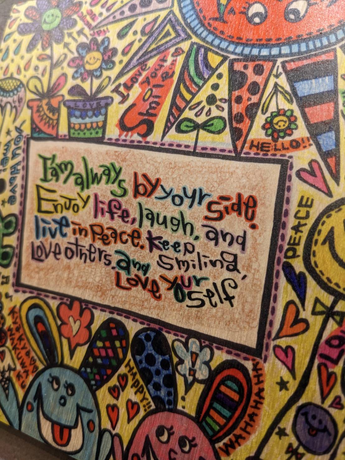 "I am always by your side. Enjoy life, laugh, and live in peace. Keep smiling, love others, and love yourself."