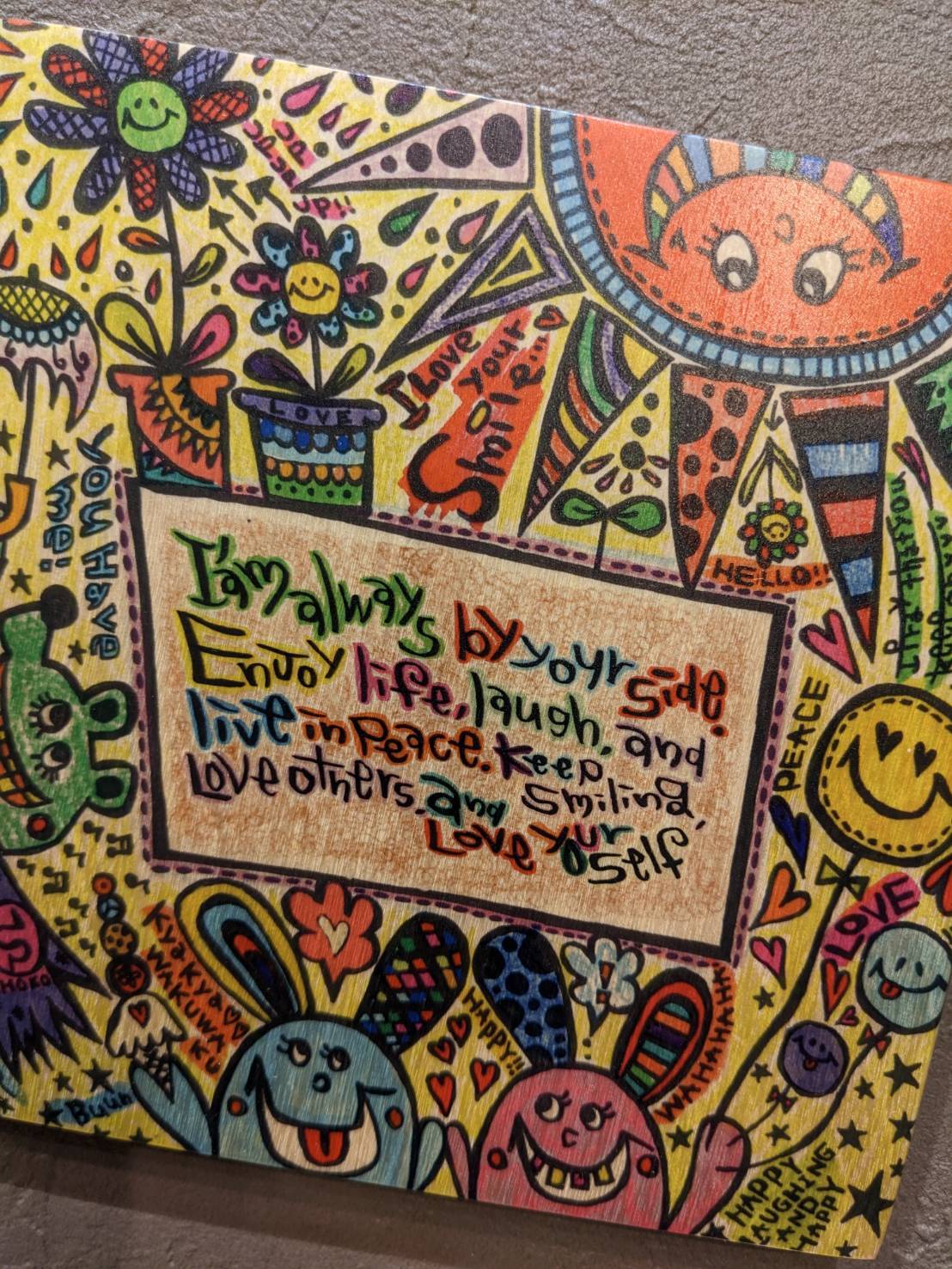 「私はいつもあなたのそばにいるよ。人生を楽しんで、たくさん笑って、平和に過ごしてね。笑顔を絶やさずに、周りの人を愛し、そして自分を愛してね。」