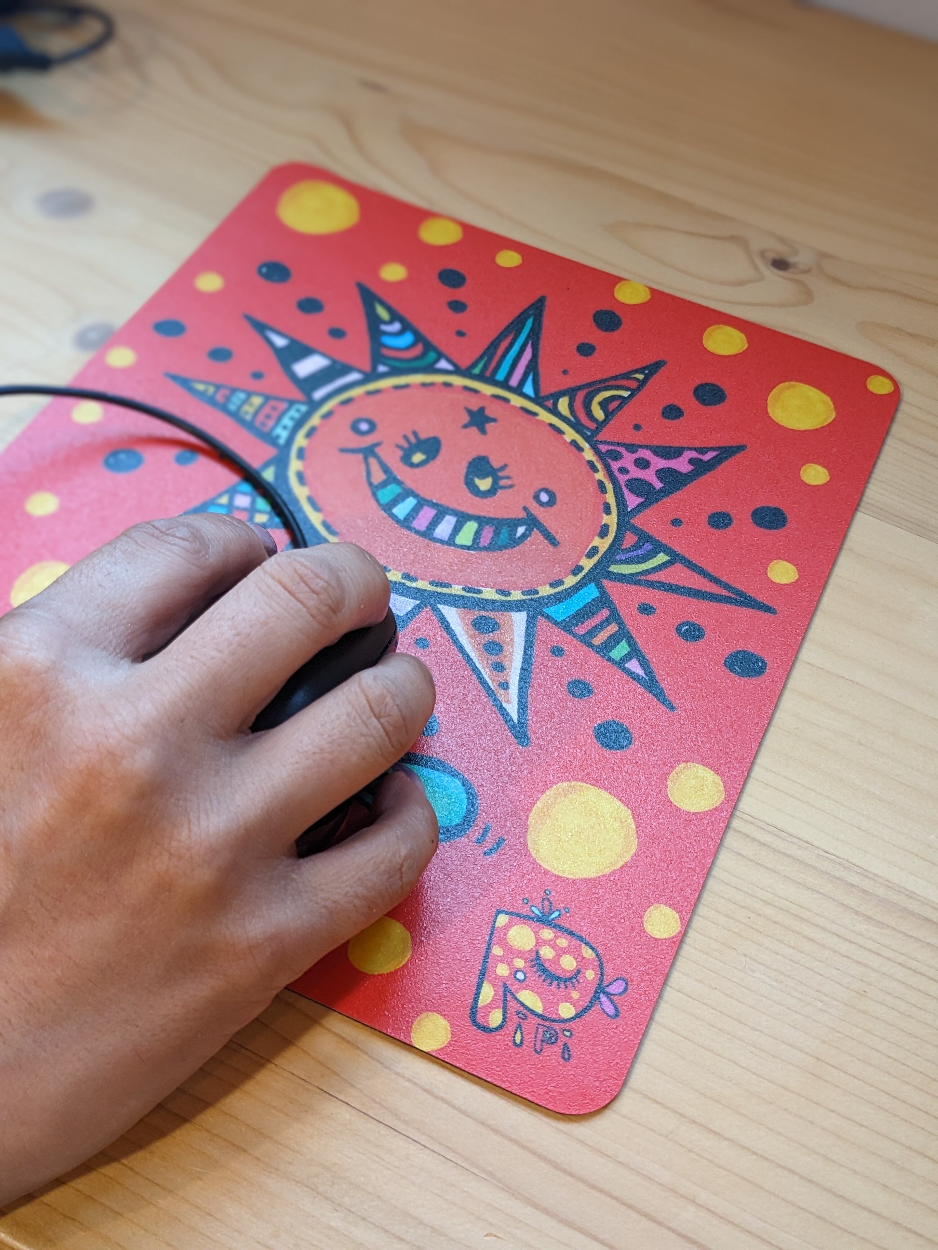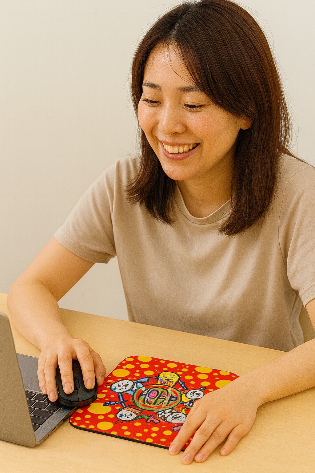 手描きイラストをデザインした、デスク周りを明るく彩るオリジナルマウスパッドです。