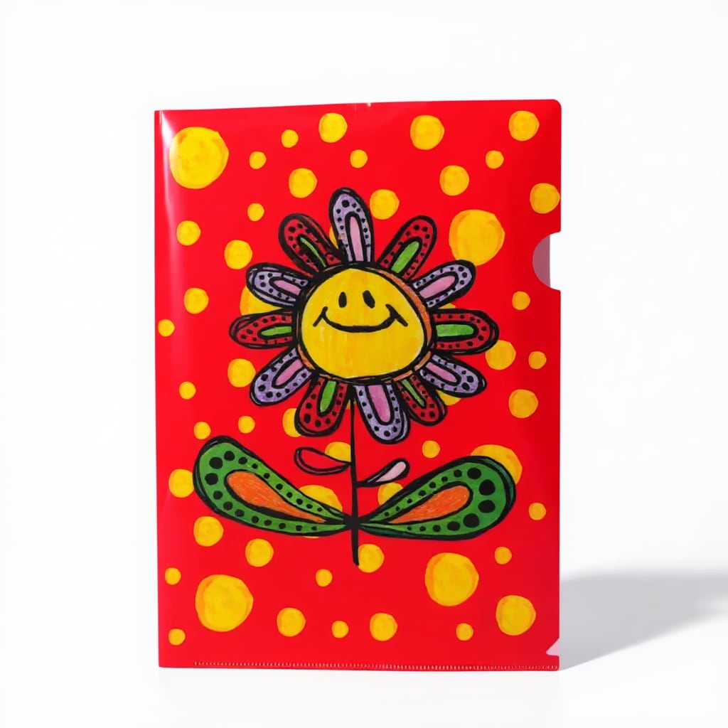 カラフルな手描きイラストを鮮やかに再現したA4サイズのクリアファイルです。