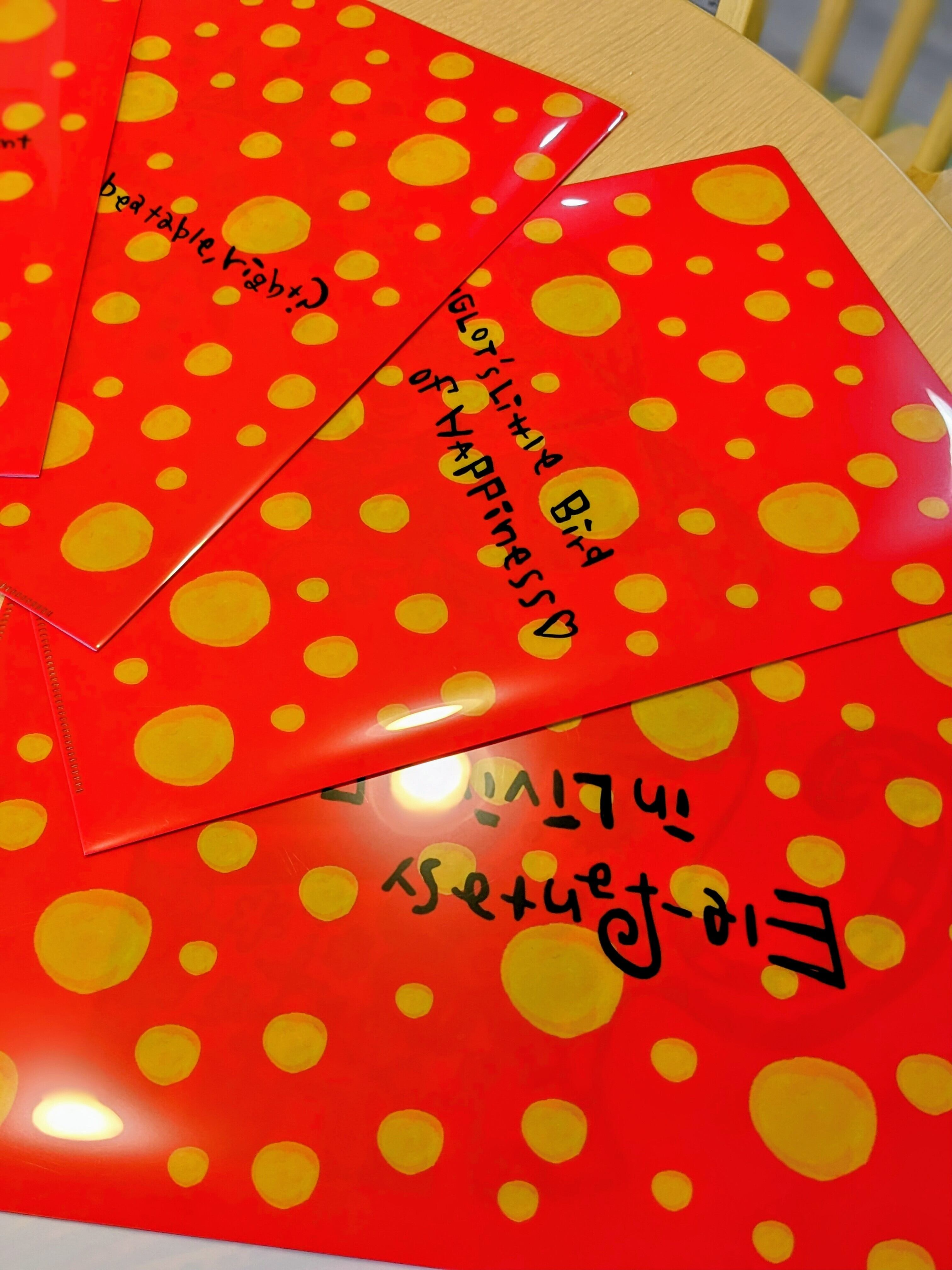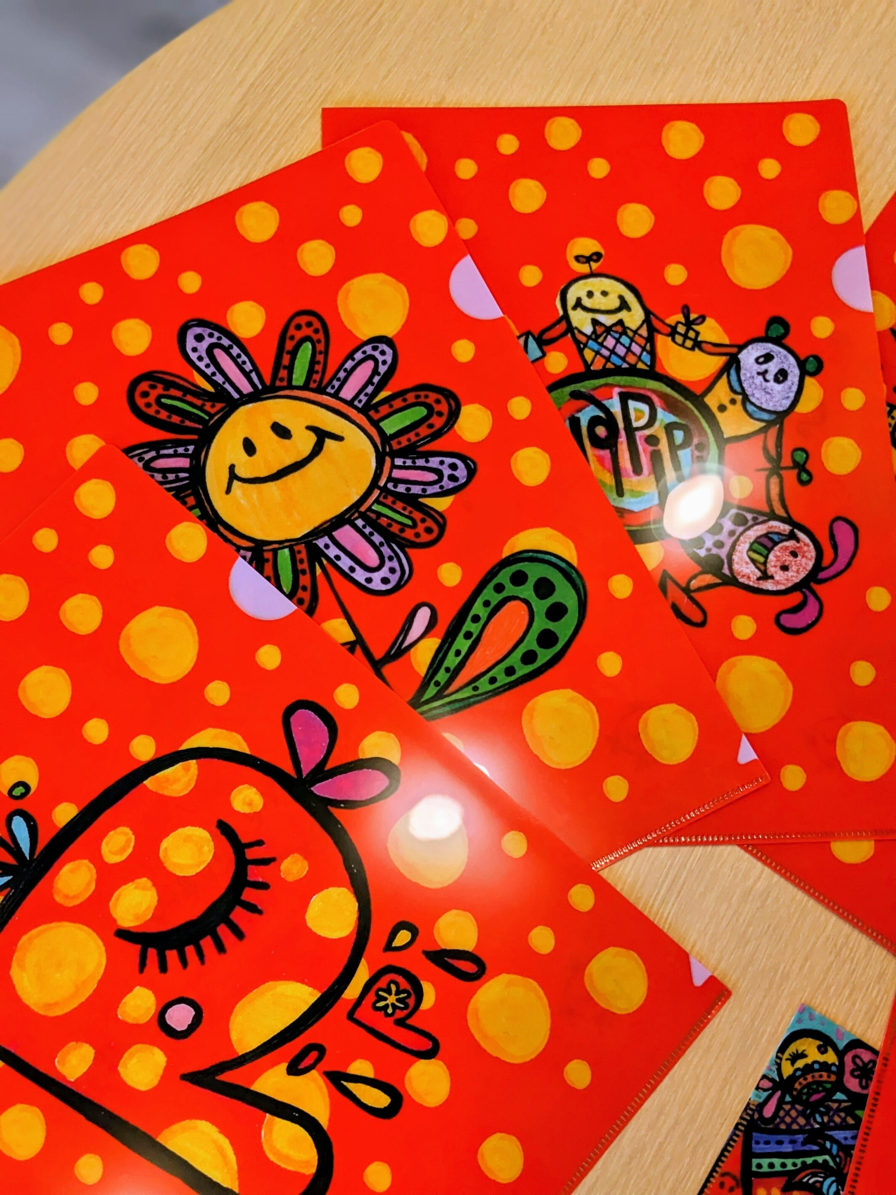 カラフルな手描きイラストを鮮やかに再現したA4サイズのクリアファイルです。