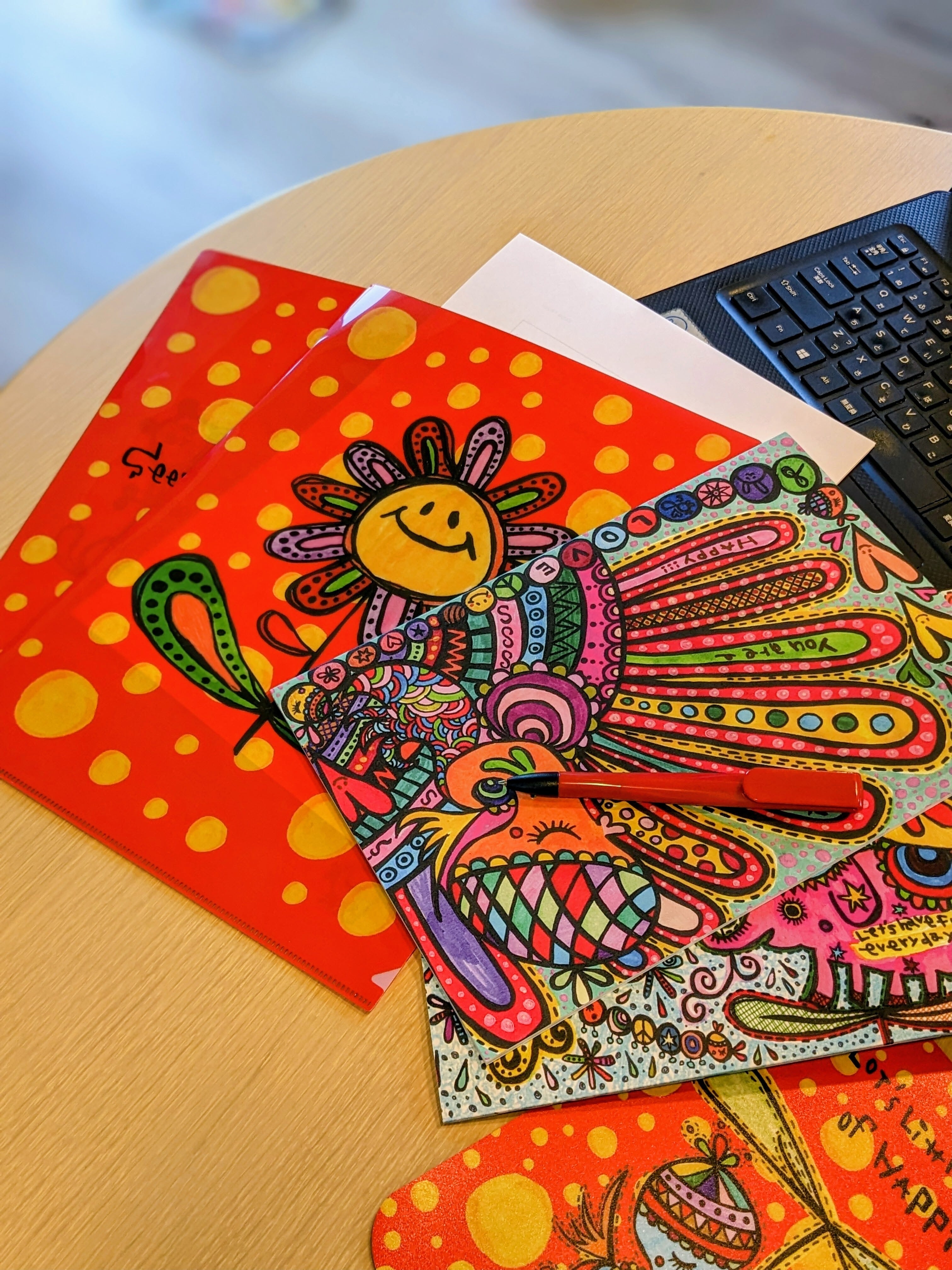 カラフルな手描きイラストを鮮やかに再現したA4サイズのクリアファイルです。