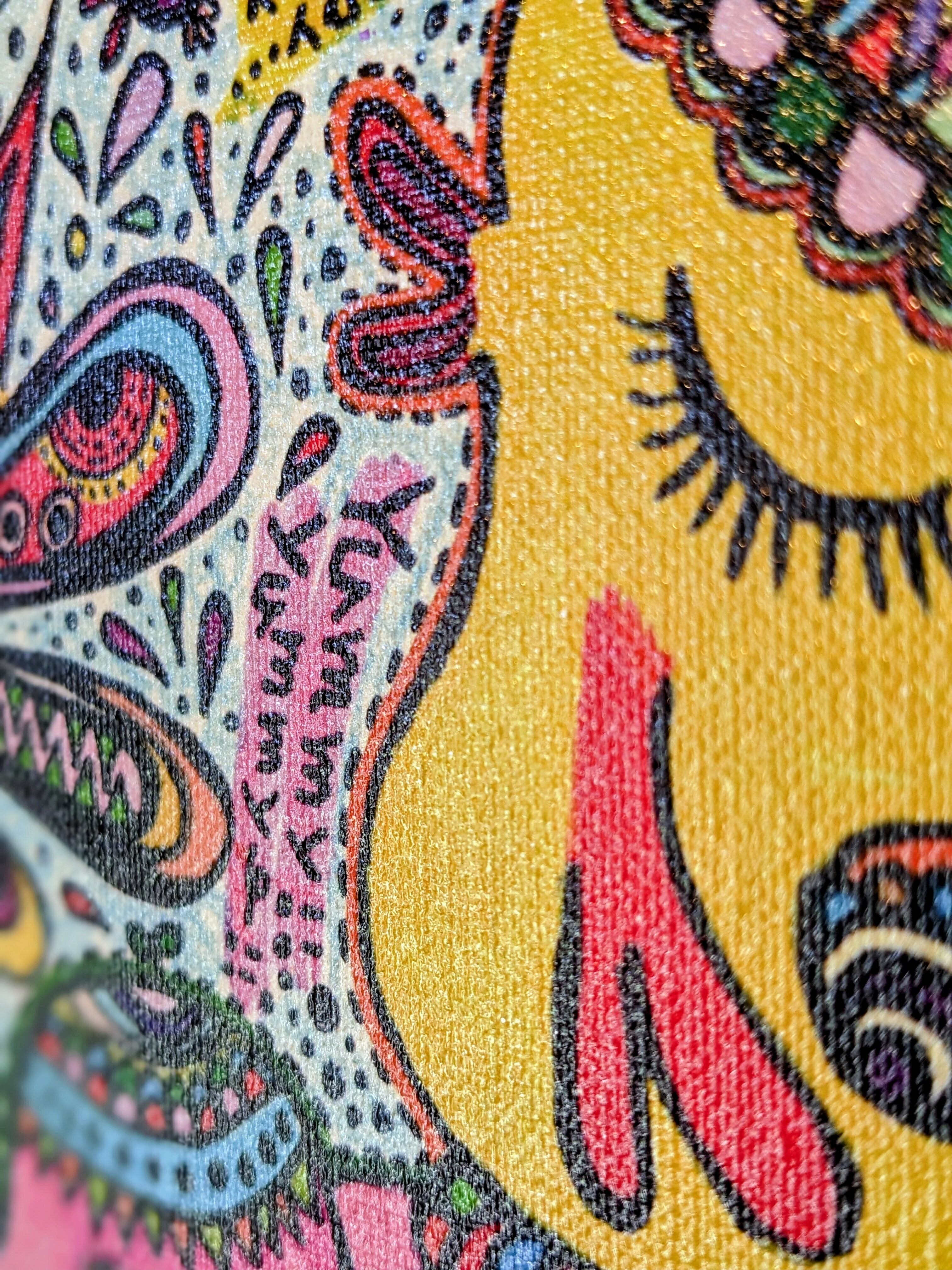 カラフルな手描きイラストを活かしたアートや雑貨を展開しています。