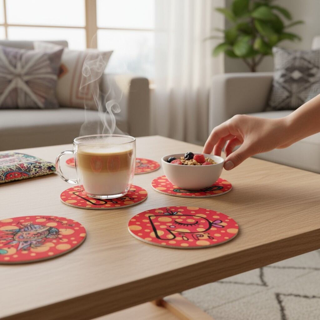 テーブルの上を明るく彩るアートデザインで、毎日のティータイムやお食事の時間が少し特別なものに。