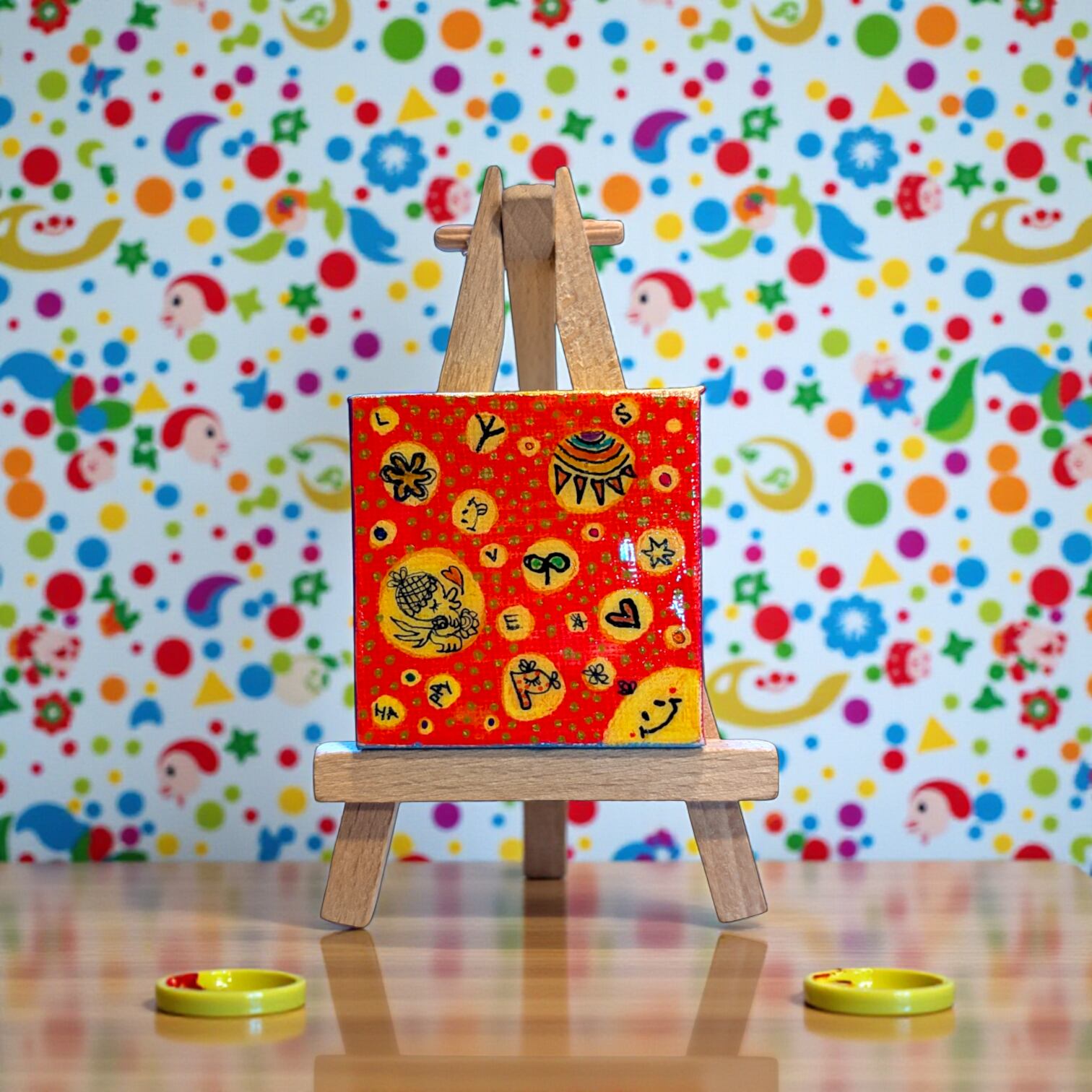 【pipi手書きミニキャンバス ミニイーゼル付き 水玉達のきもち】