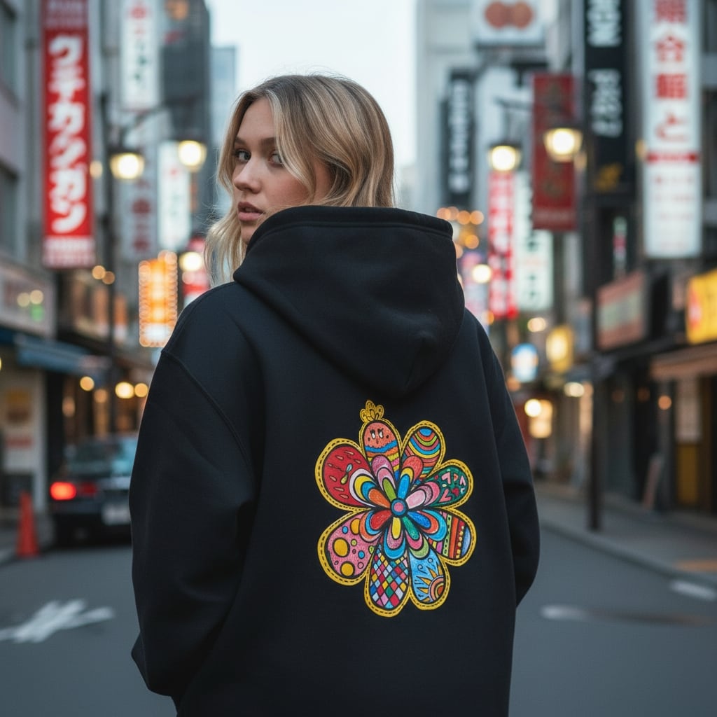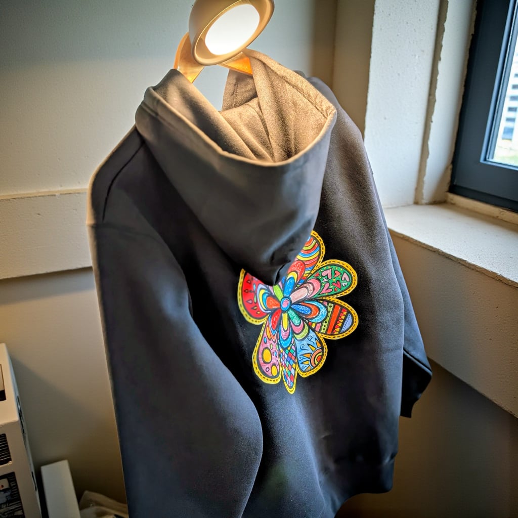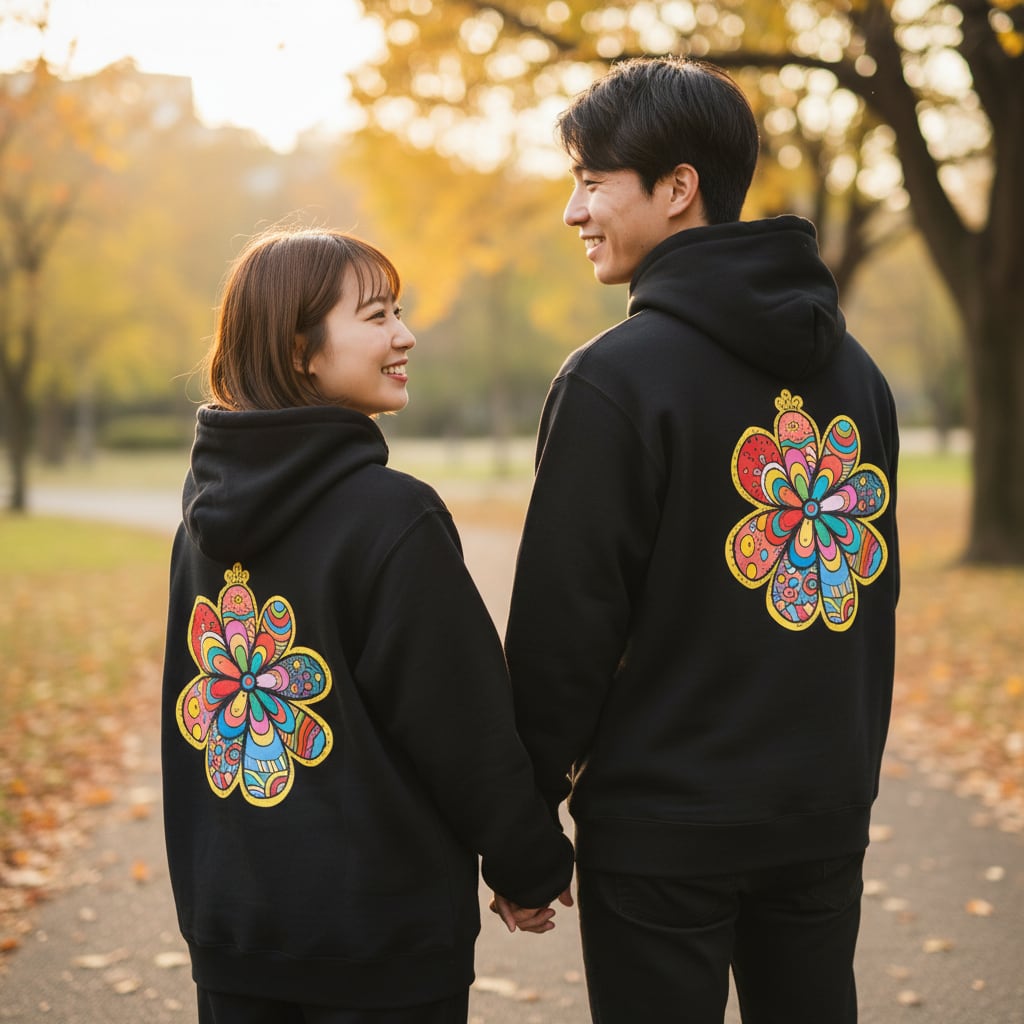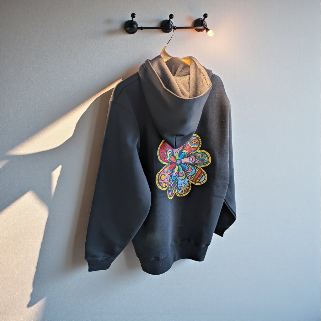 カラフルであたたかみのある手描きデザインが、日常に小さな元気と前向きなパワーを届けてくれるパーカーです。