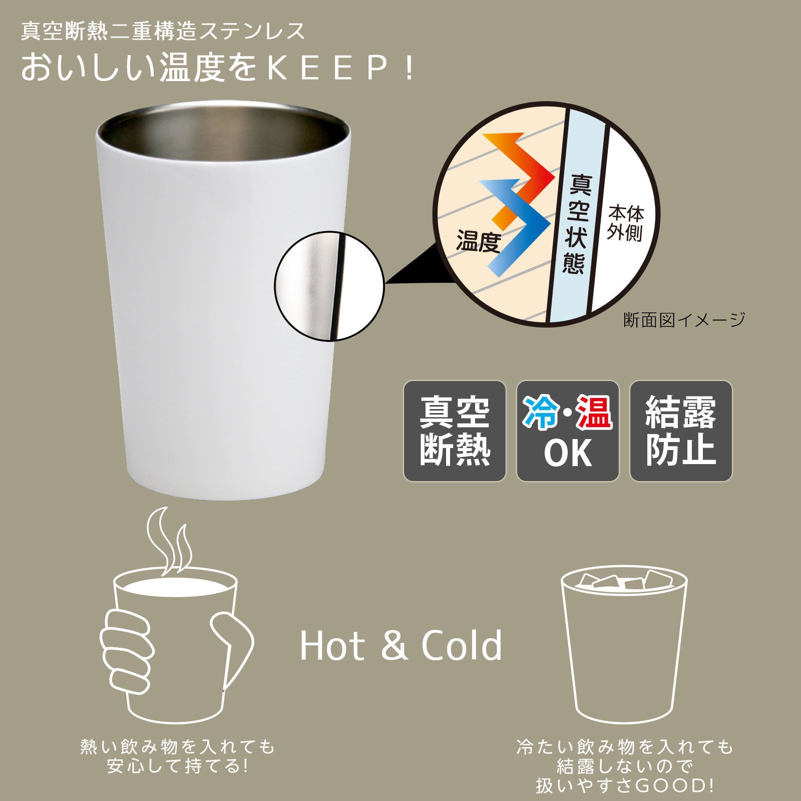 真空二重構造のステンレス仕様で、飲み頃の温度をしっかりキープ。