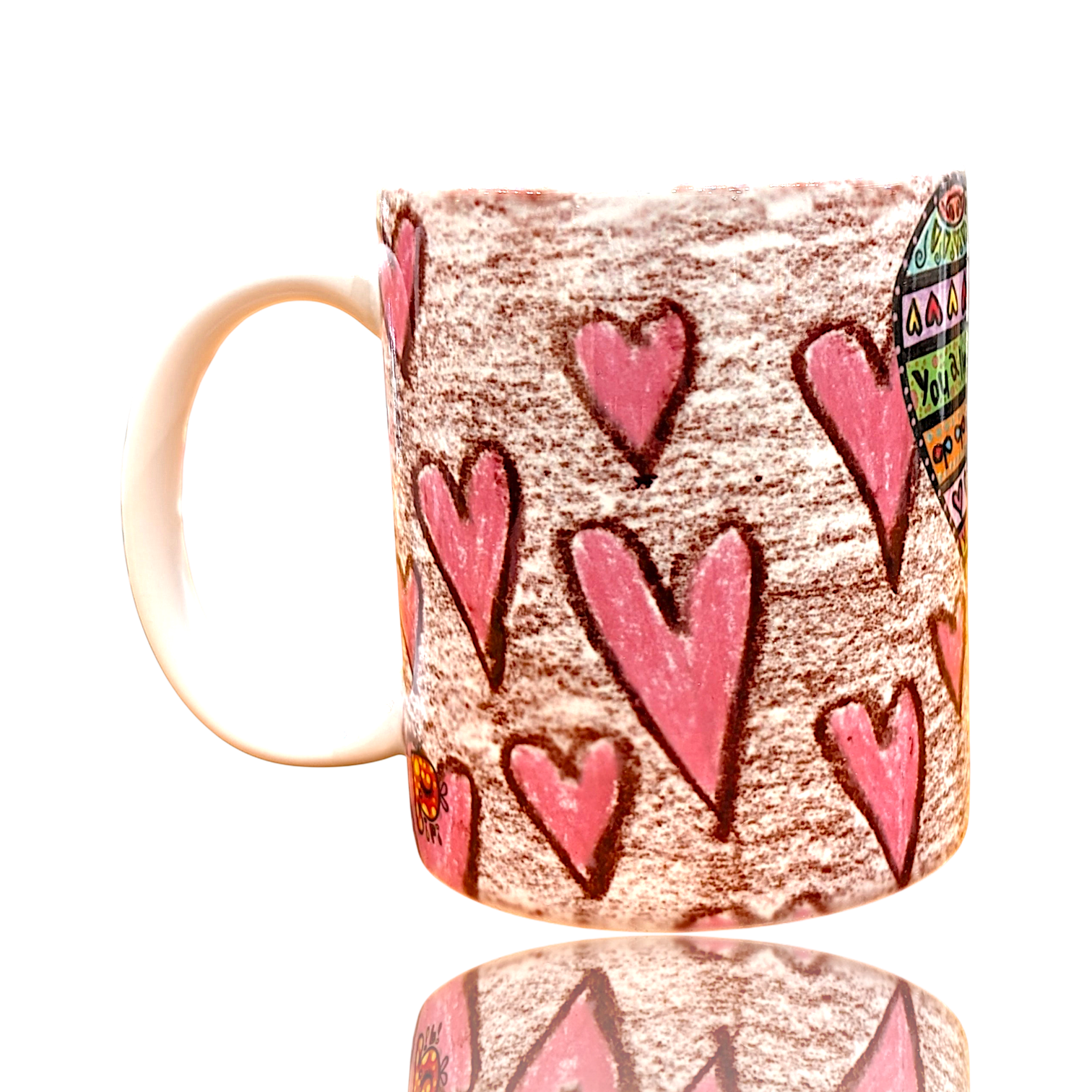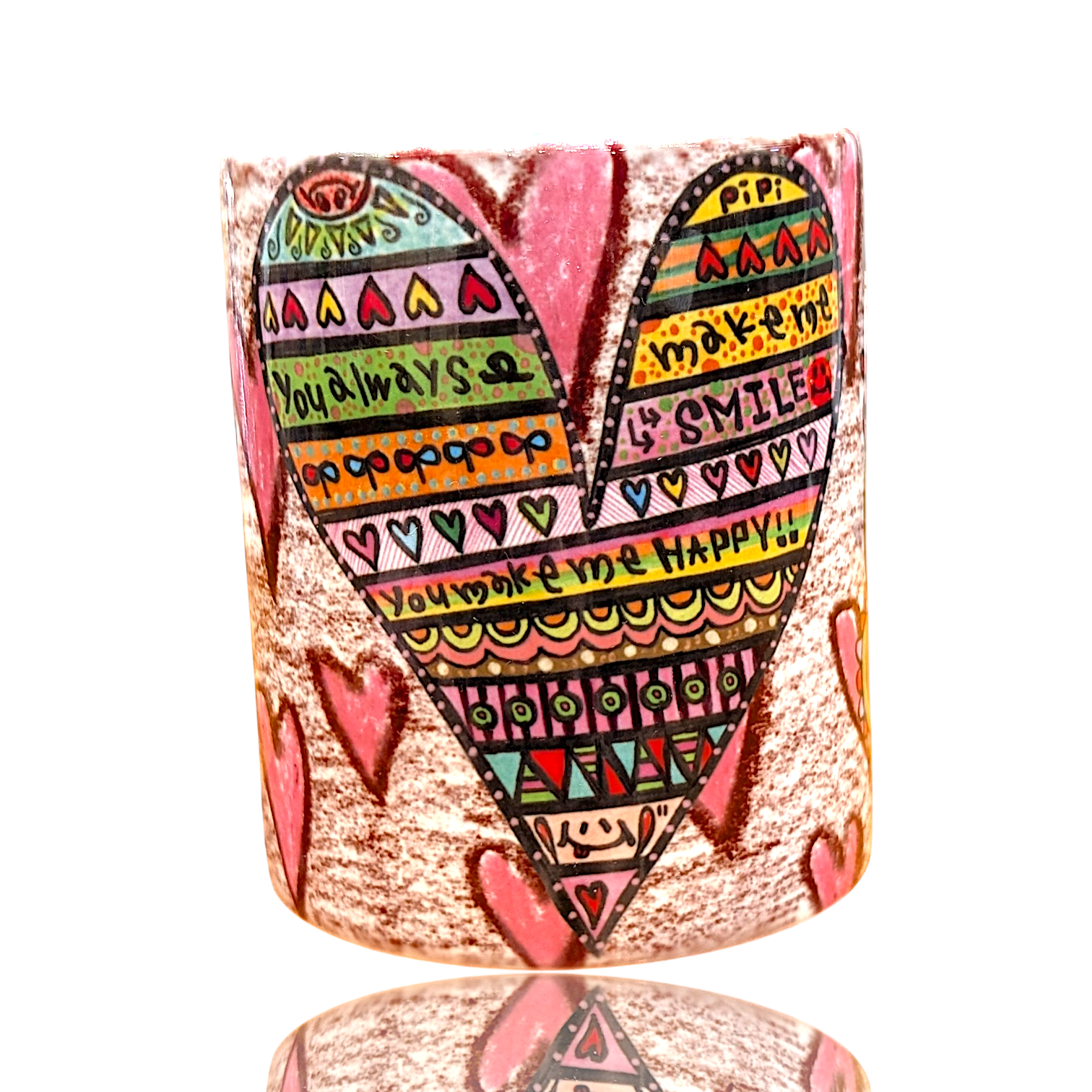 仲良く寄り添うとりちゃんと、ハートモチーフがぐるりと広がるデザインは、