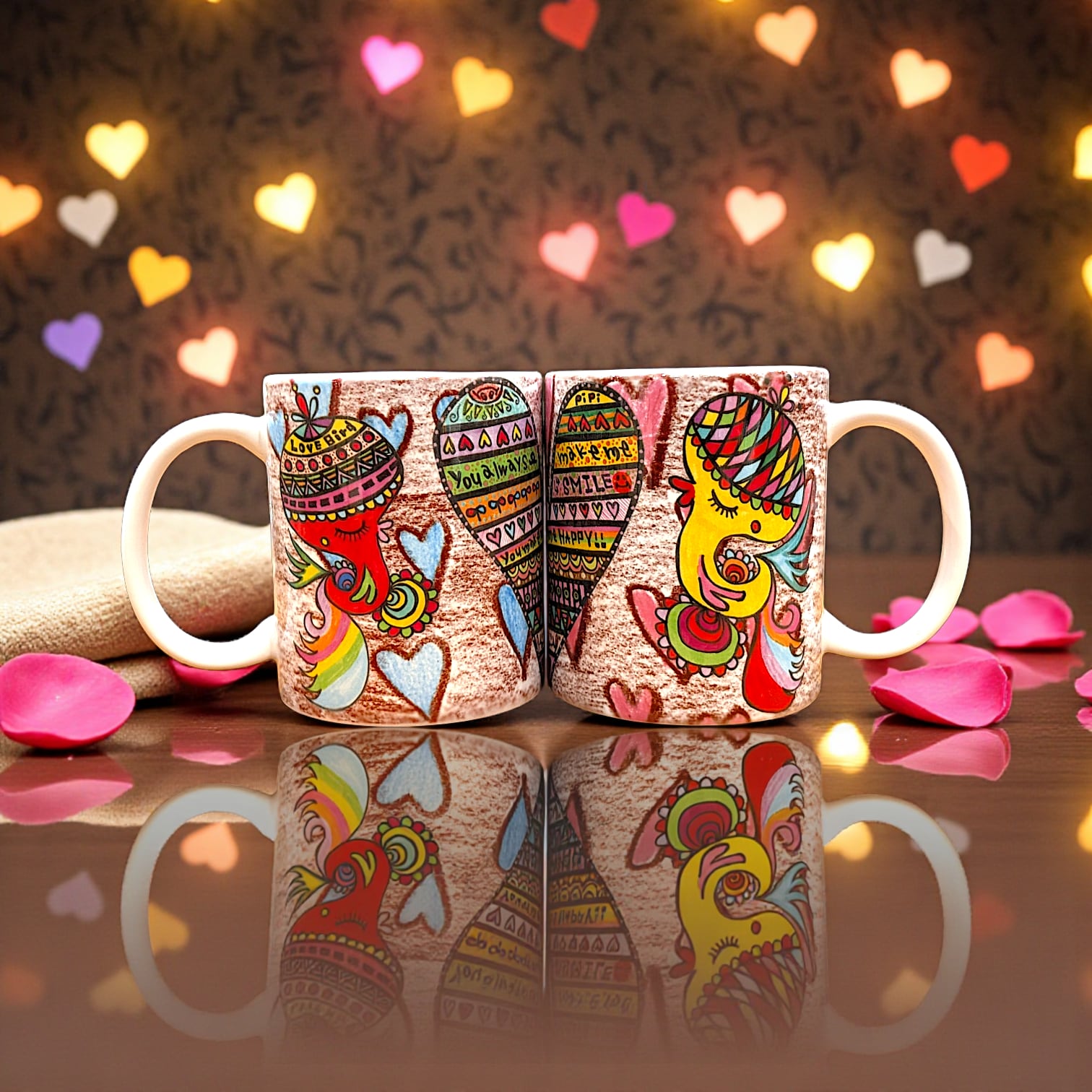 とりちゃんとハートモチーフを組み合わせた、特別なペアデザイン。
