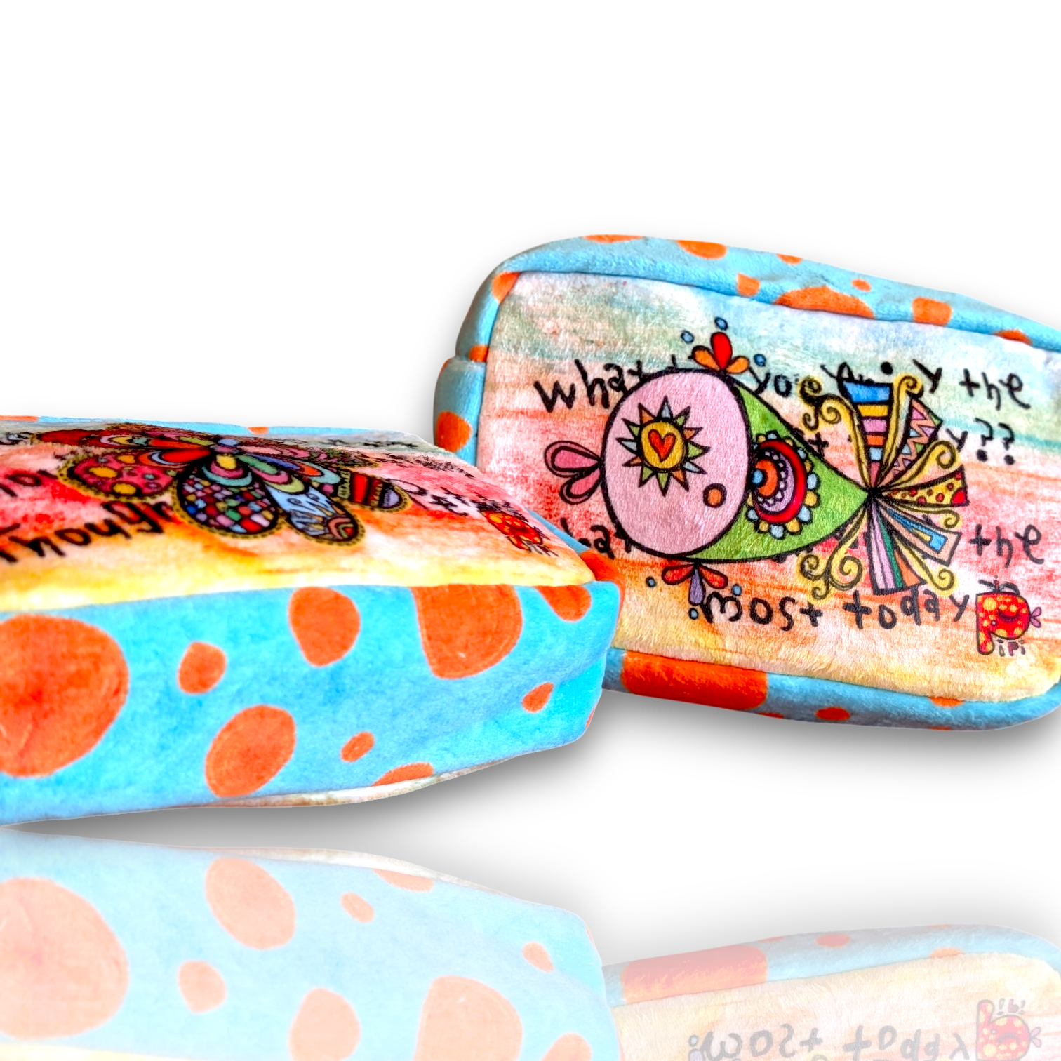 ふわふわの手触りと、カラフルでハッピーなデザインが魅力の