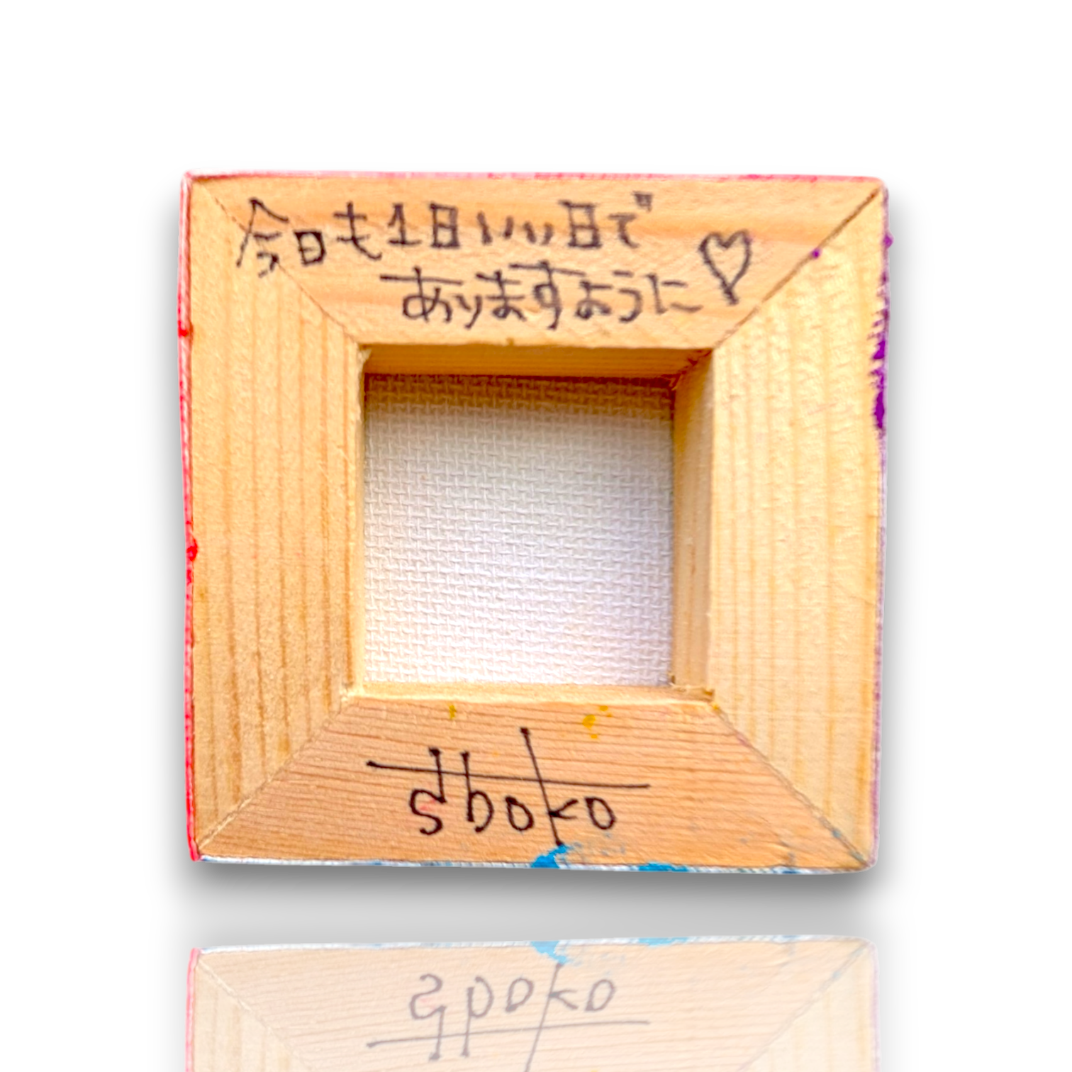 5センチ四方の小さなキャンバスの中に、前向きな気持ちになれる温かさと元気を込めています。