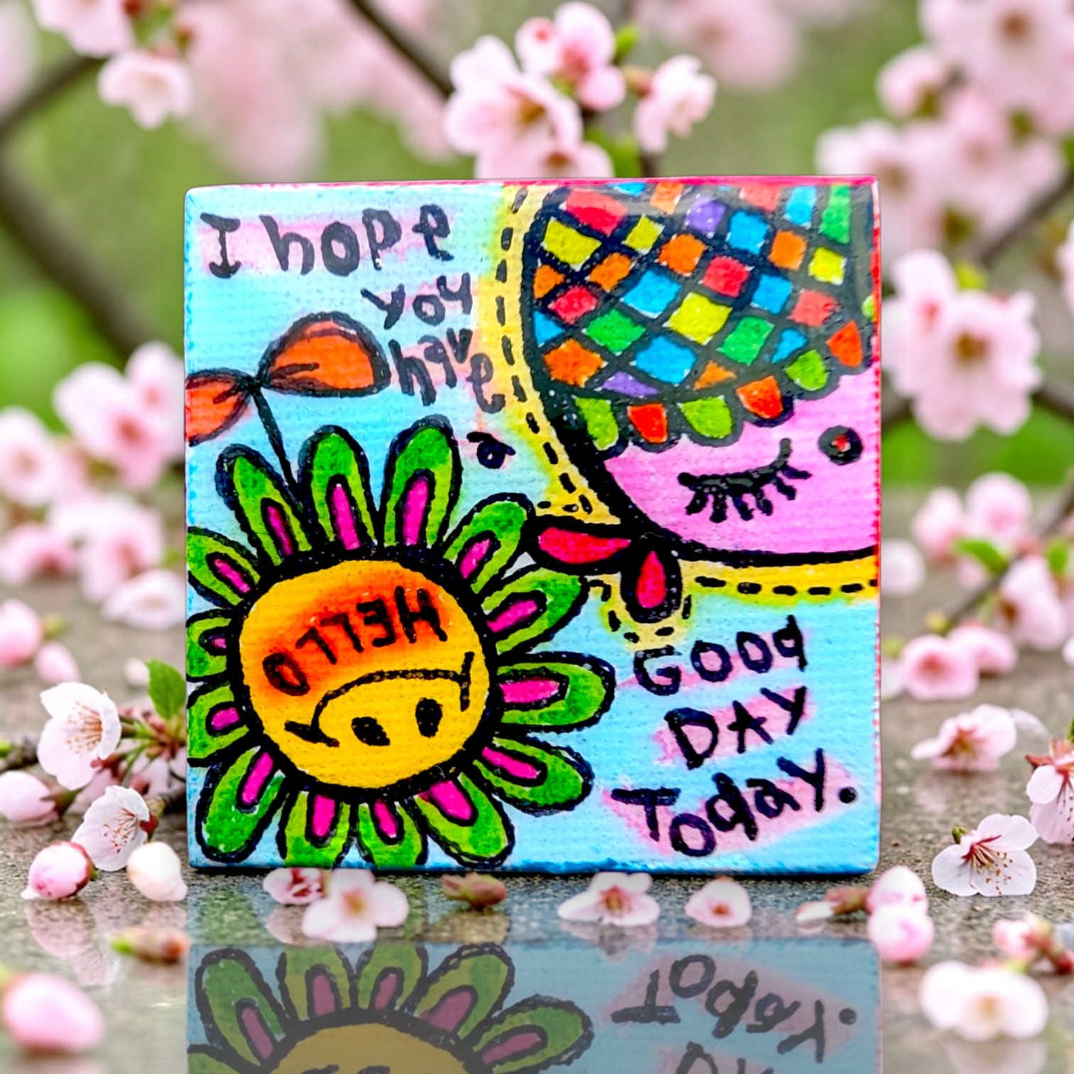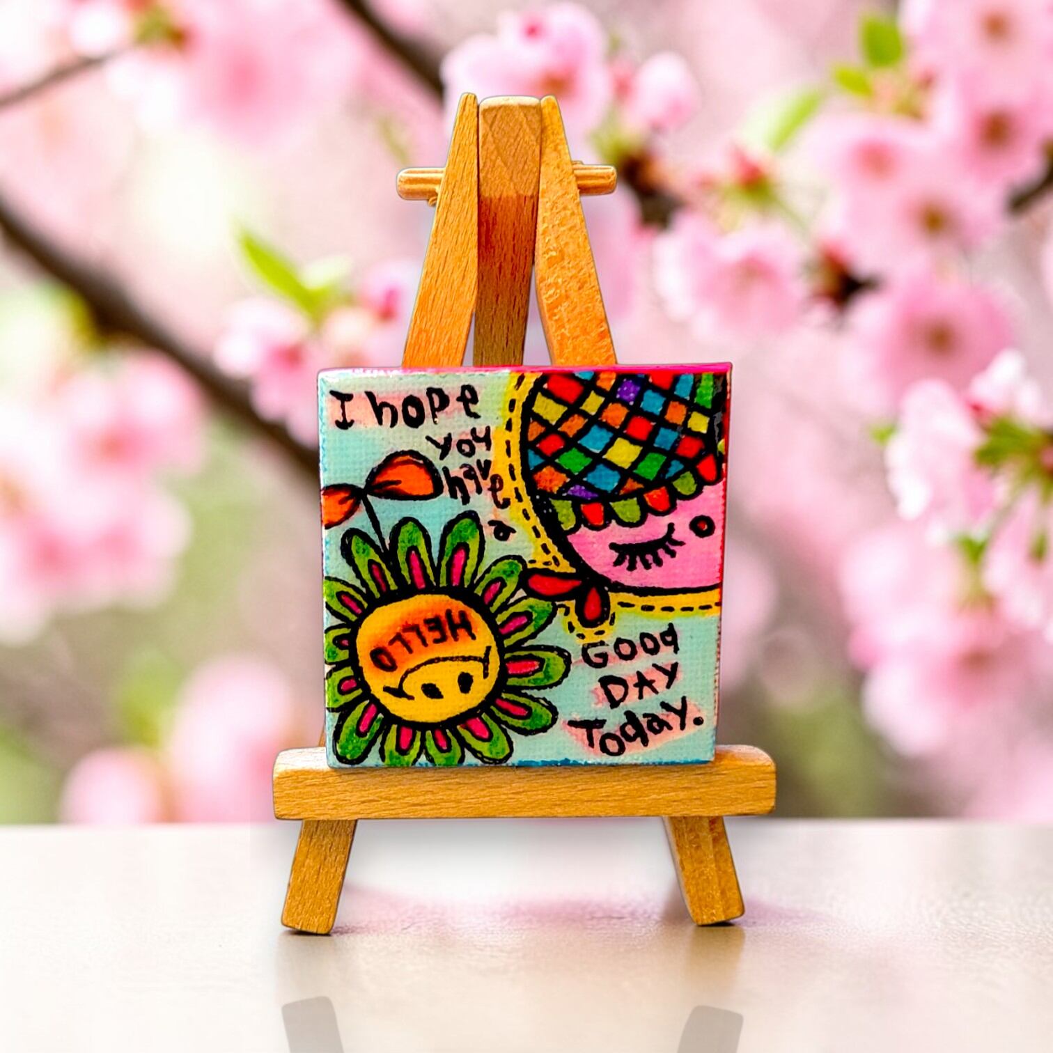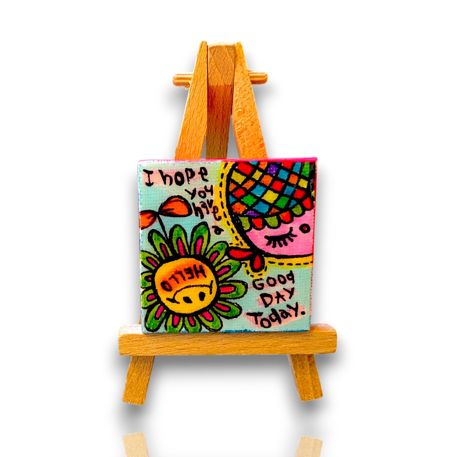 【pipi手書きミニキャンバス ミニイーゼル付き 今日も1日いい日でありますように♡】
