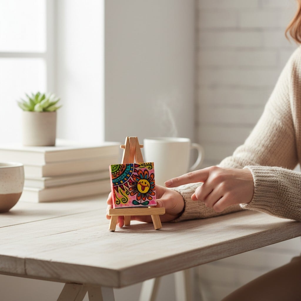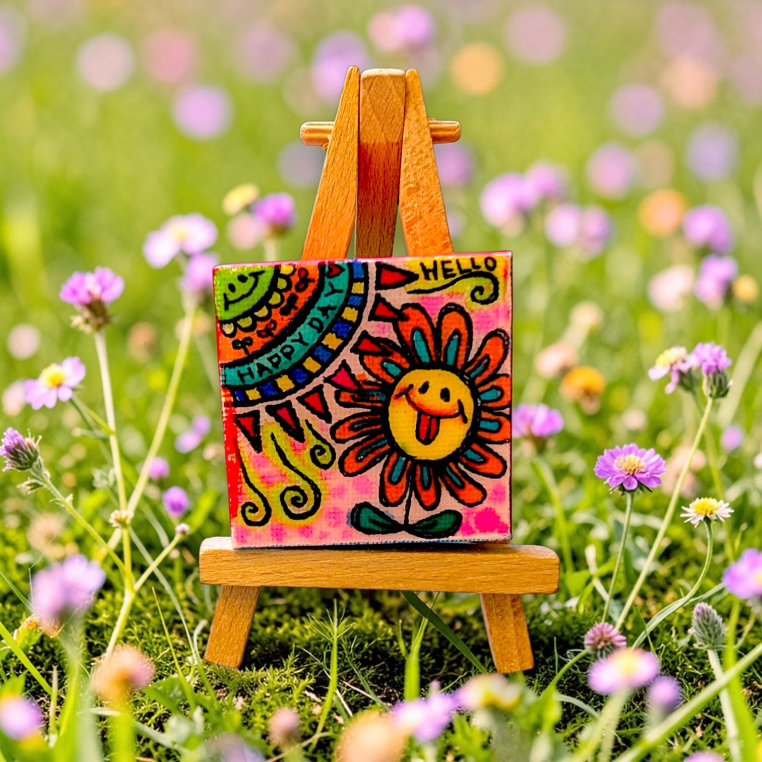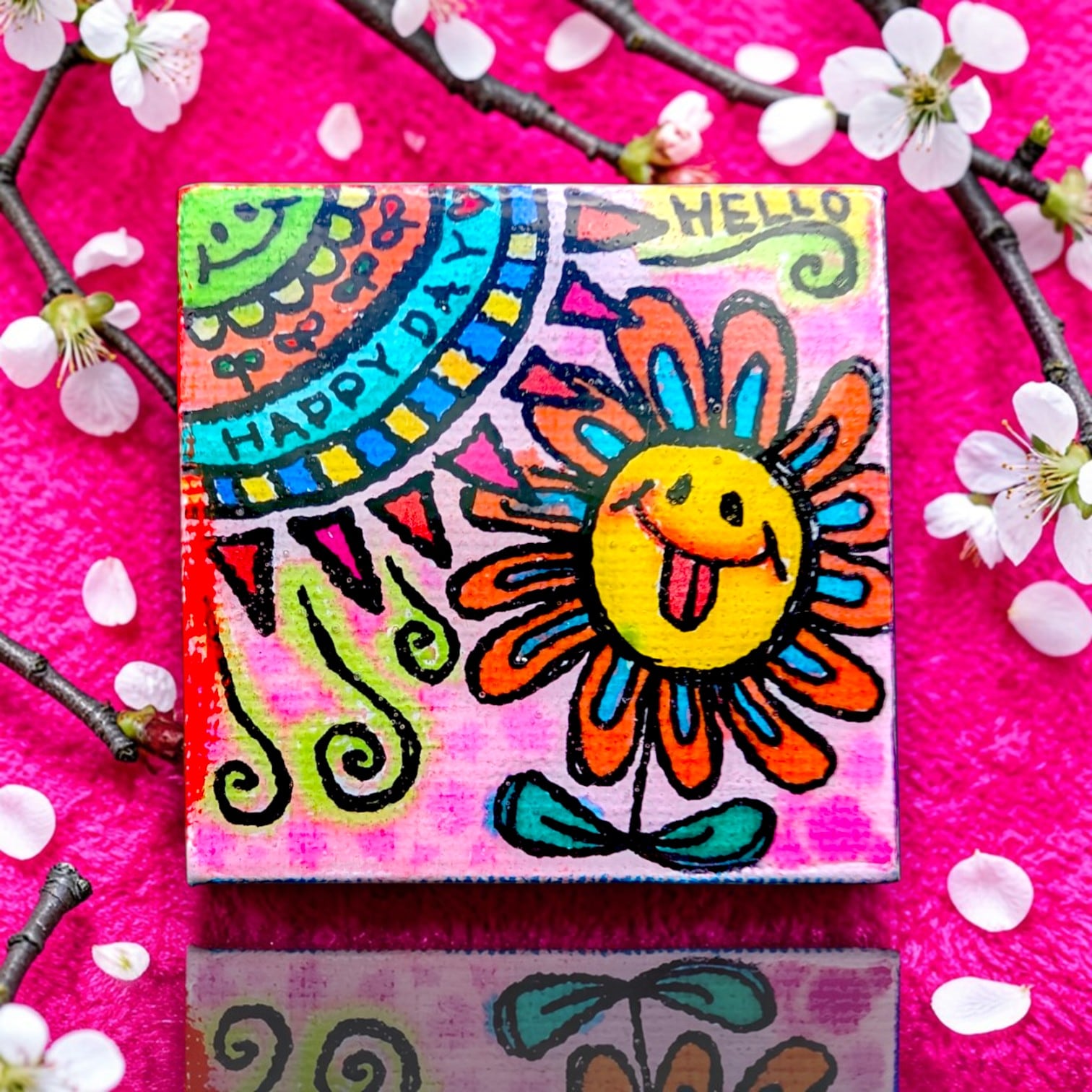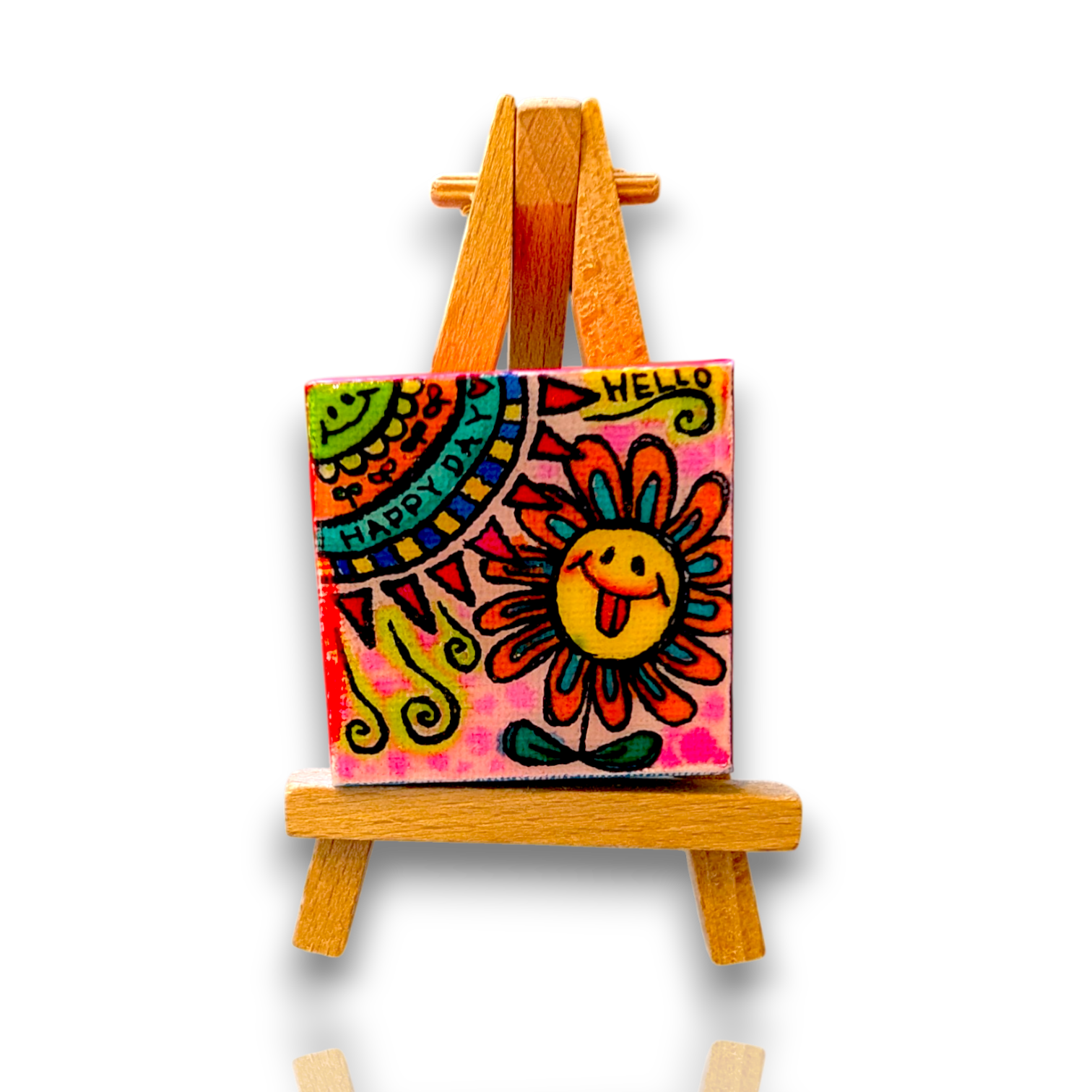 玄関、デスク、リビング、寝室などどこに置いても空間が明るくなる小さなアートです。