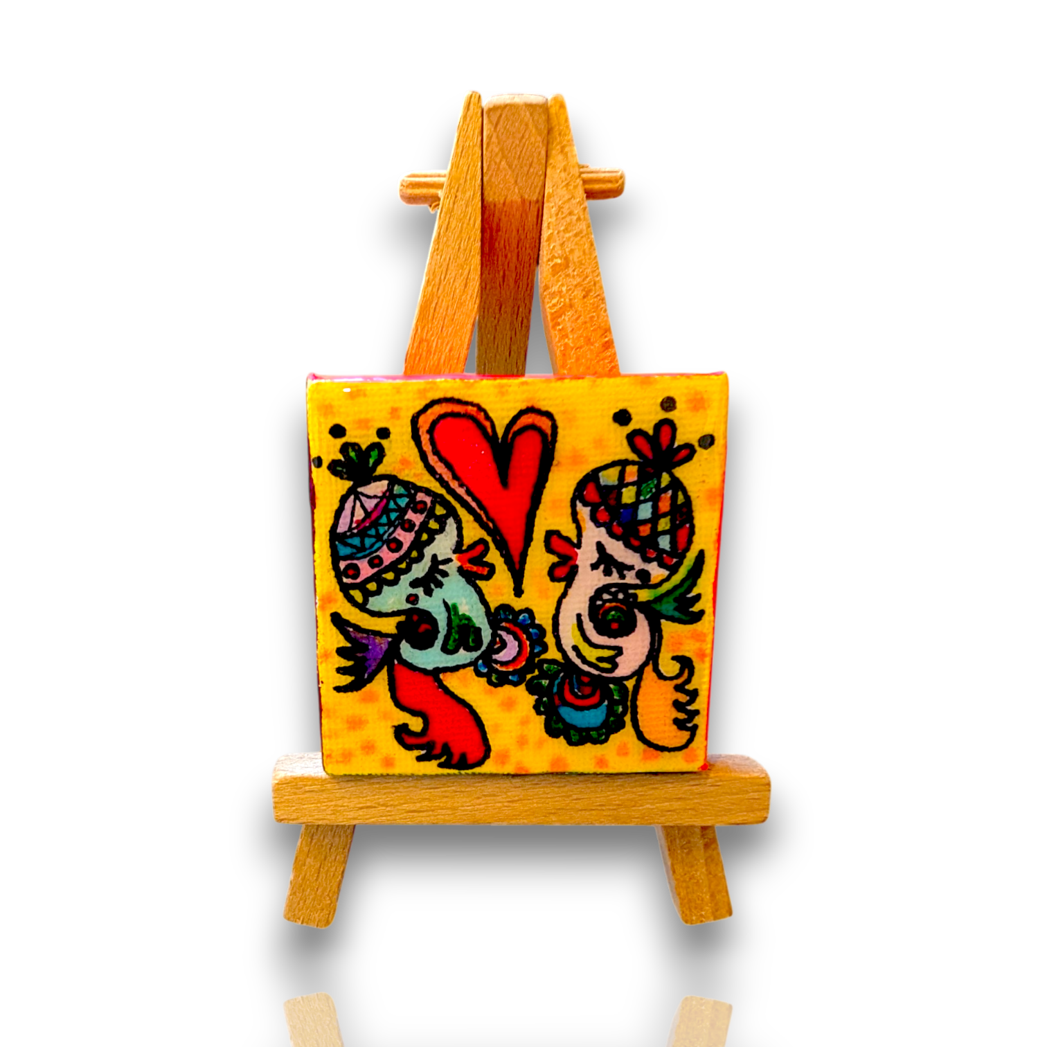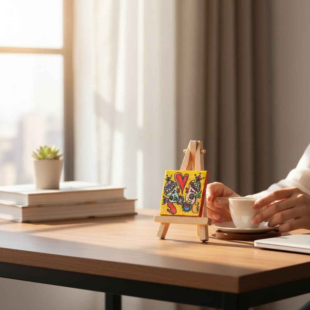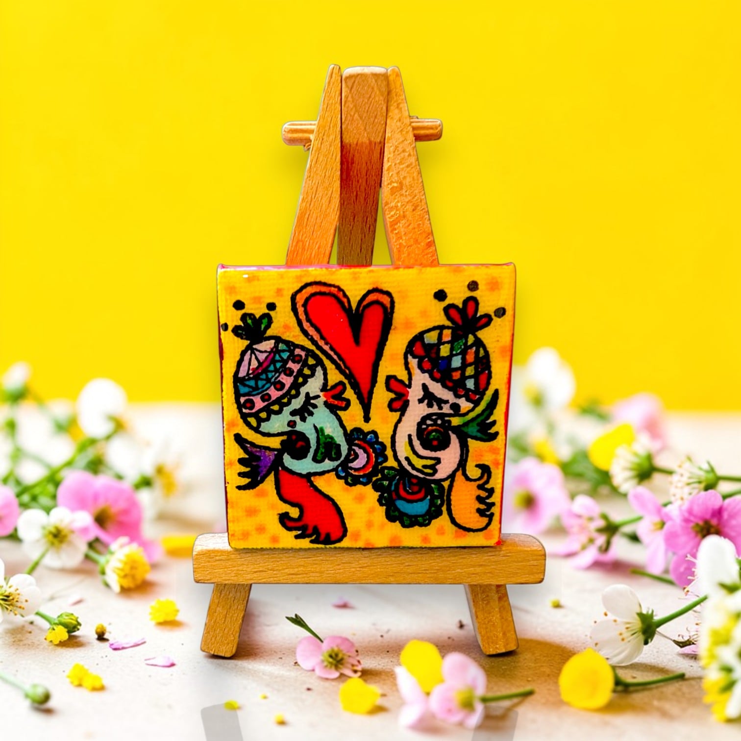 玄関、デスク、リビング、寝室などどこに置いても空間が明るくなる小さなアートです。
