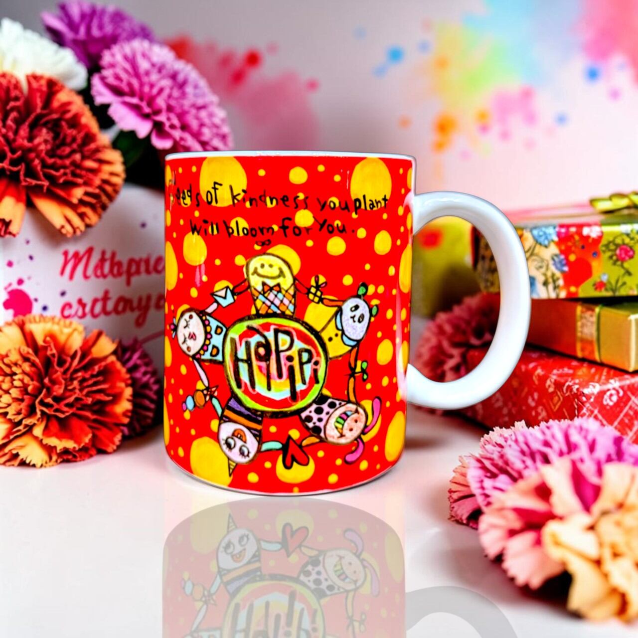 【母の日限定ラッピング付】pipi陶器マグカップ ハピピ