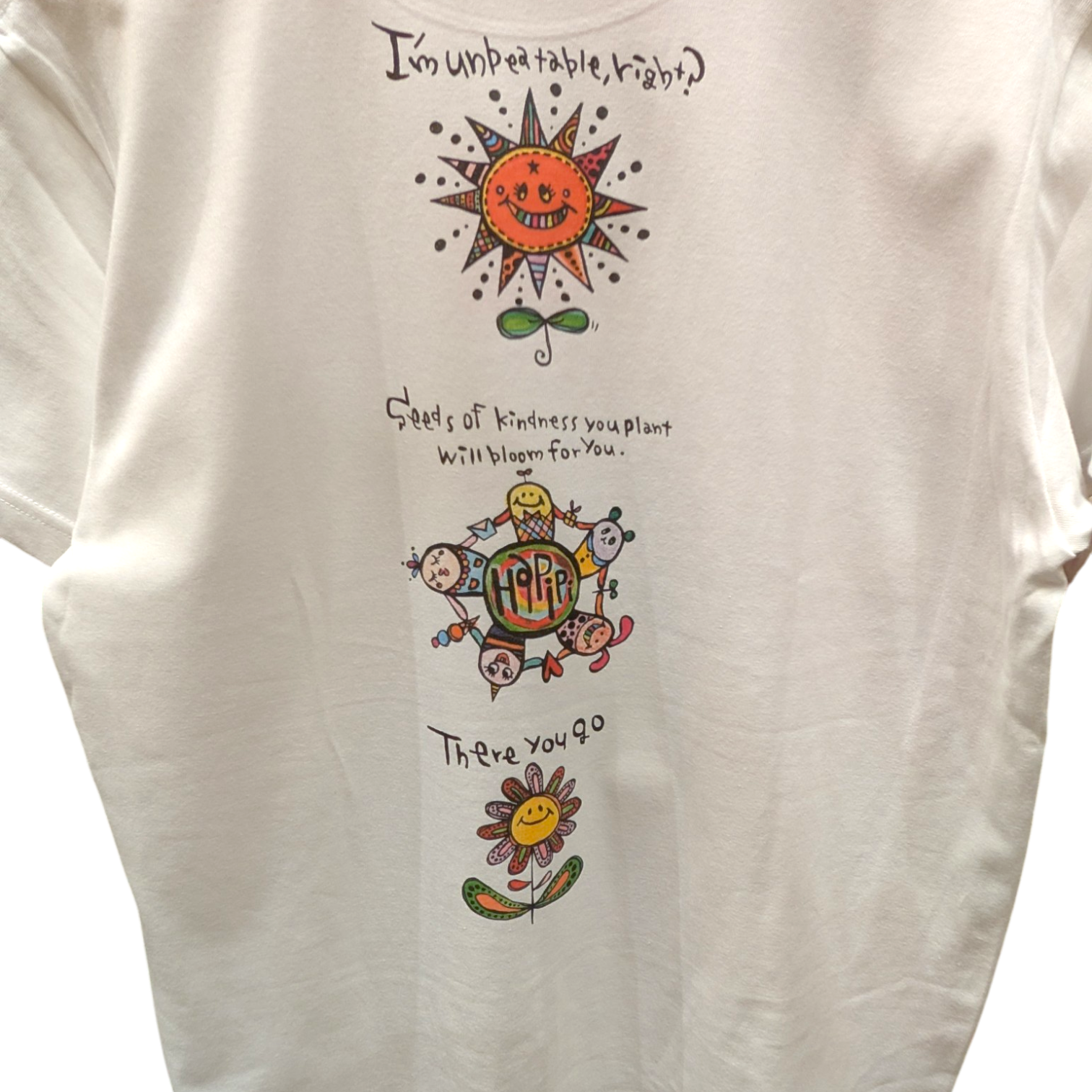 pipi人気のキャラクター3人がコラボしたTシャツ(わたし無敵でしょ?、ハピピ、ほらねっ☆)
